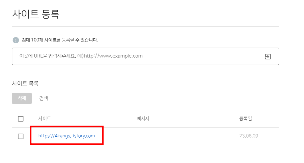 다시 네이버 서치콘솔 등록화면으로 돌아와 소유확인 버튼을 클릭합니다. 보안문자 입력을 하면 소유확인이 되었다고 팝업창이 뜹니다. 사이트목록에는 방금 등록을 마친 내 사이트 주소가 따끈따끈하게 올라와 있습니다.