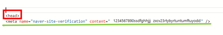 일단 시키는 대로 그레이색 바탕의 텍스트 <meta name="naver-site-verification" content="123456sdfgkfj1238973987" /> 를 복사한 후 이 창은 열어둔 채